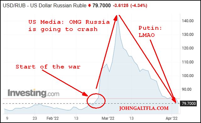 Speaking of the Ruble, yeah, it’s made a full round trip and then some since the war started: