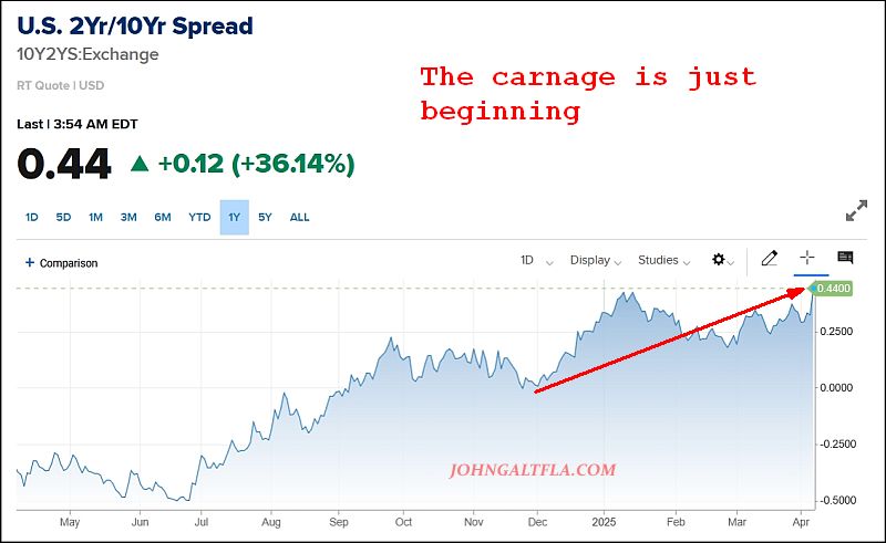 Meanwhile, the blowout in the short term part of the Treasury curve is rallying hard is causing a rapid bear steepener in the 2s10s: