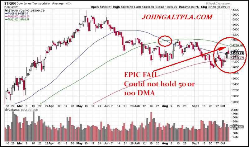 The warnings about what will probably happen next are being displayed everywhere. The Dow Transports are a good example: