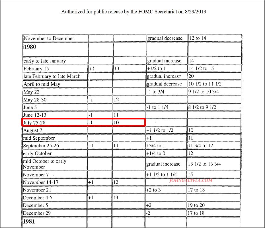 Amazing how the three cuts in the summer of 1980 start to look vaguely political and familiar akin to the cuts engaged in by Jay Powell & Co. during this election cycle.