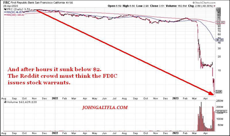Tonight the FDIC seized and shut down First Republic Bank of California (Symbol: $FRC) in what was the least shocking bank failure of this year.