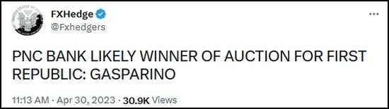 The financial world was saved from rampant speculation overnight as the rumors began to swirl around midnight on the savior of the FDIC and First Republic. The hints were dropped just after midnight as to who that might be.