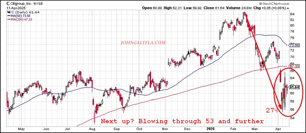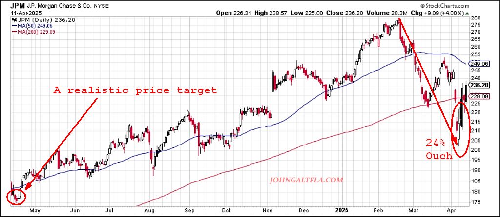 A sharp, hard decline from 279 to 208, a move of over 24% tends to get Mr. Dimon on the phone with Treasury Secretary Bessent pretty darned quick.