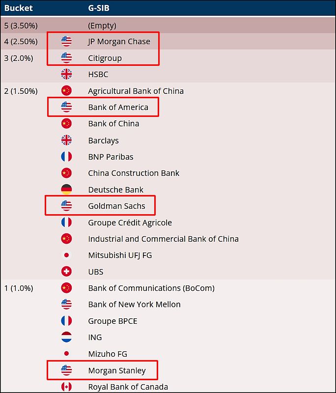 From the Financial Stability Board in Basel, Switzerland, the current list of globally systemic banks relating to these institutions listed above: