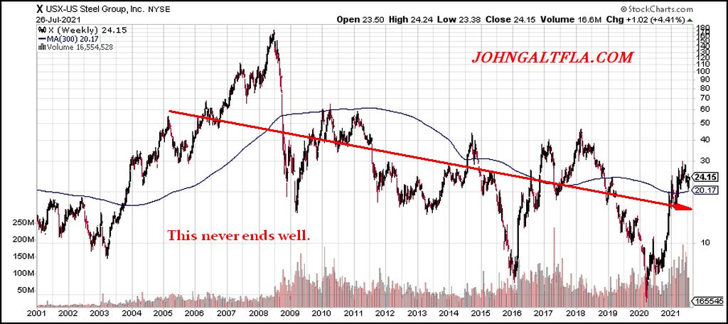 The other narrative is that long term holding of quality companies will result in great returns. Of course the financial propaganda media highlights the Apples, Teslas, etc. of the world. But what about a good old fashioned American steel giant like US Steel: