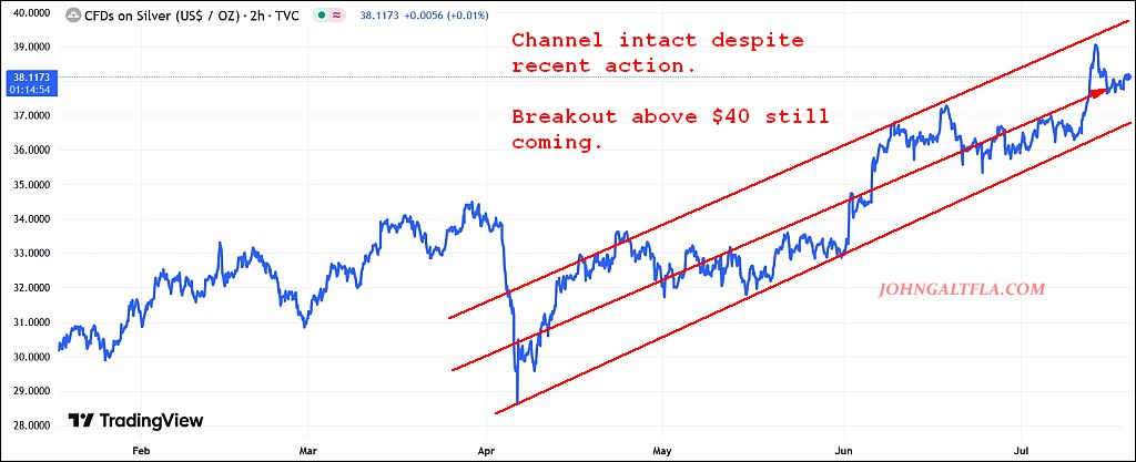 Meanwhile for those of us who are silver bulls, the last week did not go as planned as the US dollar suddenly rose from the grave but now with President Instability openly demanding to collapse its value via irresponsible rate policy, that appears to have put a floor under the price around $37.50 to $38 per ounce.
