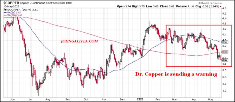Prepare for impact. A break below 3.50 on copper and $1900 on gold could indicate the first deflationary wave will hit within the next 90 days as well as an acceleration of contracting overall consumer demand. Dr. Copper never lies so there is something else fundamentally wrong with the US and global economy which indicates a contraction is incoming.