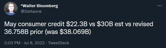 Folks, this is disastrous news no matter how you cut it as the “consumer is strong” narrative does not fit this drastic revision downwards. If the consumer was “strong” then with the start of the summer travel season at the end of May along with increased inflationary pressures it either means consumers are cutting back, or those on the lower end of the economic spectrum have maxed out their credit lines.