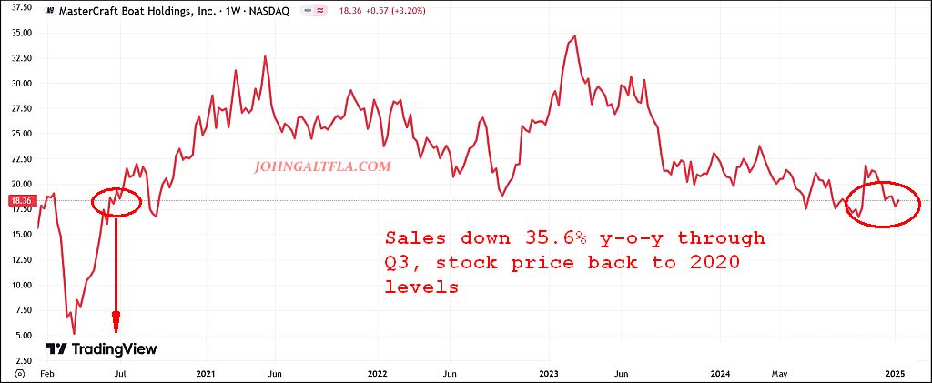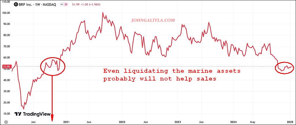 BRP Industries, a Canadian corporation, began selling most of their US based marine divisions but elected to keep the SeaDoo brand name. Unfortunately when one looks how bad their last report was on December 6 for the year ending on October 31, 2024, it was not impressive. Year round products were down 20-22% per the report while seasonal products (jet skis and snowmobiles) were down 30-32%.