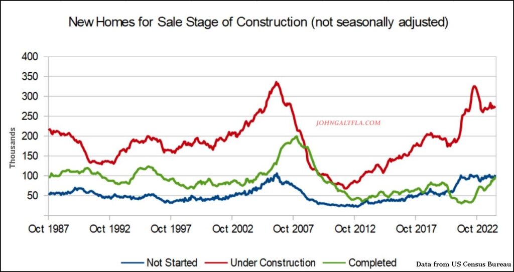 It starts to get interesting when looking at the data now, with 474,000 new homes for sale under construction yet only 325,000 sold in the last six months total.