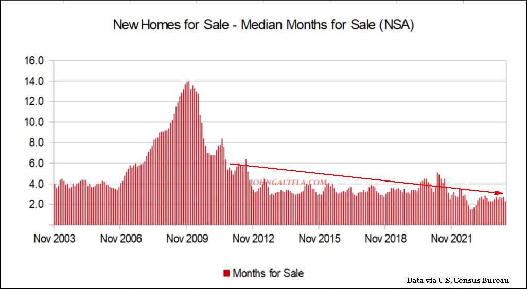 Despite this apparent lack of consistent demand, builders continue to crank out new homes at an absurd pace as the duration on the market is still historically short as demonstrated in the next chart.