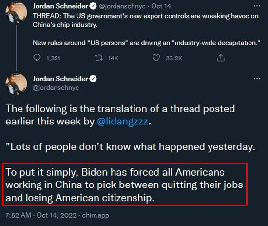 There was a lot of commentary about this statement I highlighted above. This primarily refers to green card holders and those Chinese citizens granted dual citizenship and permitted to work in China. Thus why they have to leave and apparently the Chinese government will let them and their families leave.