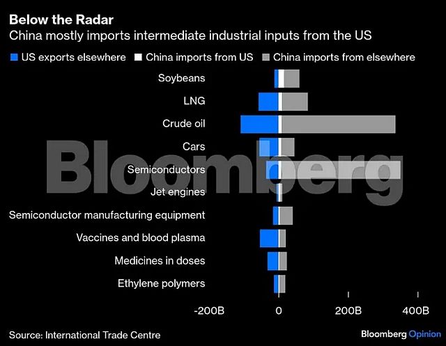 The flow in the opposite direction couldn’t be more different. Most of China’s major imports from the US are intermediate goods for its manufacturing industry, which would be almost impossible for an ordinary consumer to get their hands on, such as LNG and crude oil, silicon chips and chip-making machines, aircraft jets and plastics. The only real exception is cars — and, given the parlous competitive position of the US auto industry in China, wiping out the remnants of Buick, Chevrolet and Ford’s mainland markets might almost be a mercy killing.