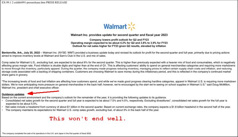 Not to mention, Walmart did not mention that their food prices are skyrocketing so on a nominal basis by reducing their retail Chic-om garbage inventory at lower prices, their grocery and apparel sections will see growth to offset those losses.