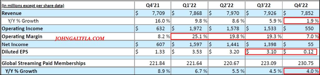 NetFlix reported “better than expected results” because they used incentives to dilute their bottom line and add suckers, er, subscribers to their network. The reality is that it cost them a lot of 2022’s positive gains because people took advantage of the “freebies” to stream and will soon quit NetFlix in favor of cheaper streaming options for the long term because cable television has turned into the whorehouse of the damned monopoly many of us were worried about.