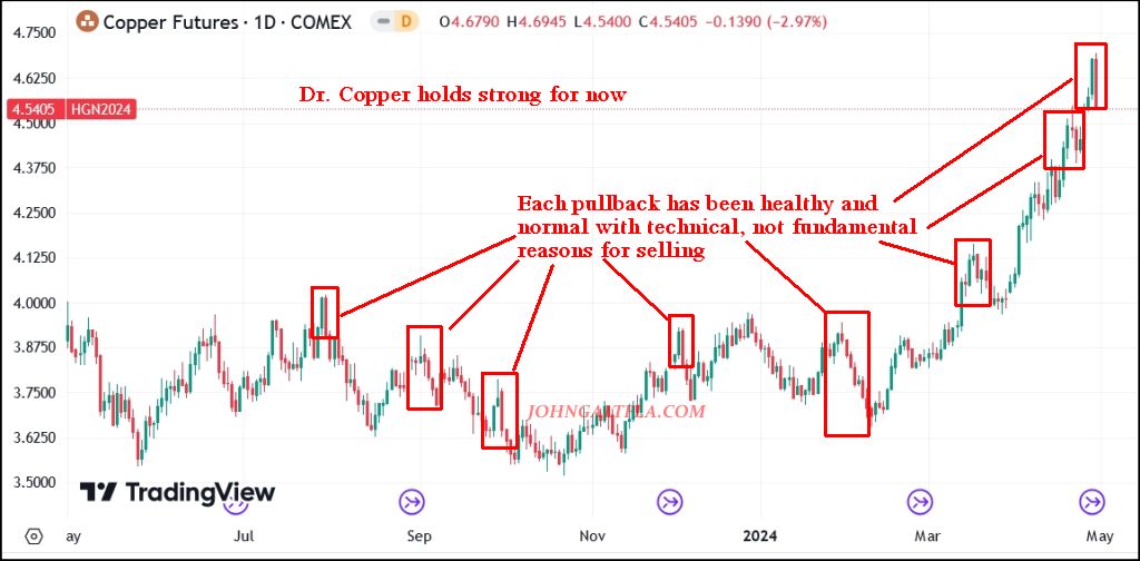 Dr. Copper seems to confirm this idea with it’s usual technical volatility as it approaches new all times high in US trading.