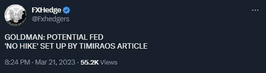 There appears to be a growing train of thought that due to the recent banking instability the Fed should and will do nothing. Goldman Sachs apparently believes this to be the case: