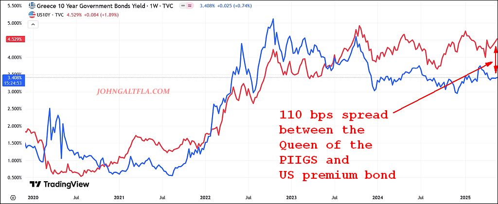 Just like buying crap bonds from Greece which yield has a yield, well, look for yourself: