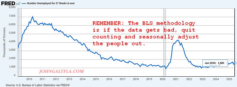 Once the tariff indigestion is digested by the end of September, look for corporations to make even harsher decisions regarding overhead and begin eliminating some of the non-AI replaceable blue collar jobs which have been retained longer than many white collar positions.