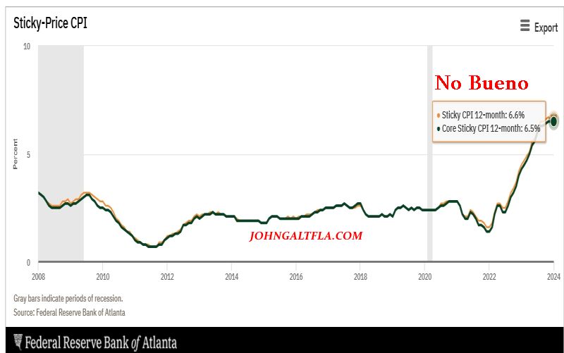 For those still wanting to be worried even more, the Atlanta Federal Reserve Bank economists updated their CPI measurements and the “Sticky CPI” should set off alarm bells inside of Jay Powell’s printing department.