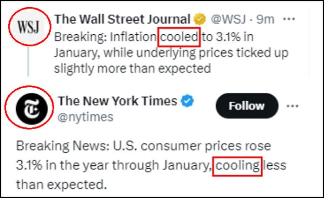 This morning’s headlines from the mainstream media about the B(L)S report on consumer prices were a sight to behold: