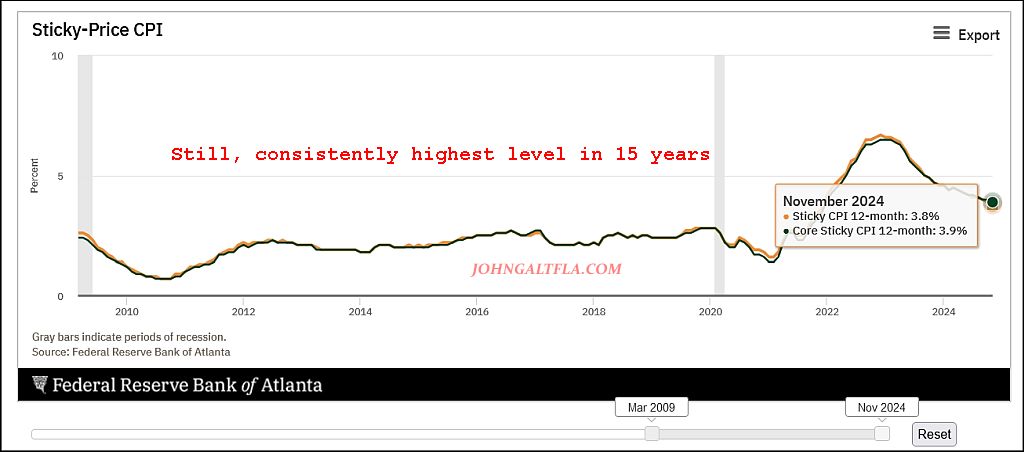 Meanwhile, the Atlanta Fed Sticky CPI seems to still reflect a higher for longer for its core numbers and that is not going to end well after the Fed cuts rates again next week:
