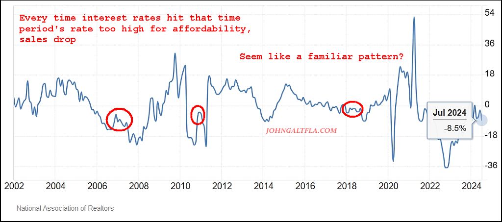 If pending home sales are collapsing at that rate then how can the affordability index for a new home, aka “starter home” in the article linked above be higher?