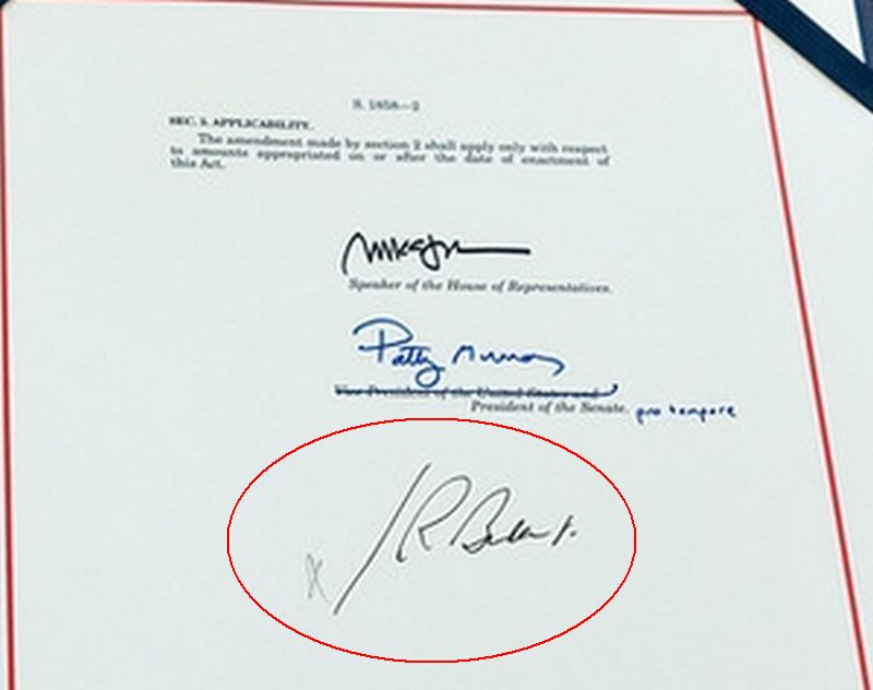 For example, here is a picture of his signature on a piece of legislation: