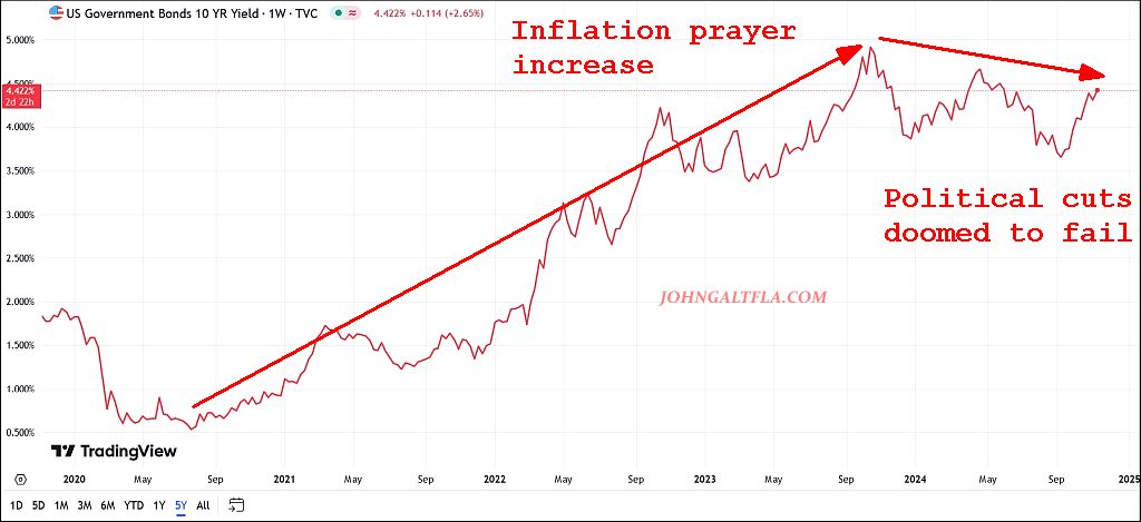 The second option is that the investors, both domestic and foreign, recognize that the Federal Reserve had blundered again and in fact started an inflationary cycle several months ago by stopping rate increases, ceasing to accelerate quantitative tightening, and endorsing the idea that the lower inflation rates published by both the Fed and US government were indicative of transitory disinflation. The problem with that theory is that if it is a “false positive” then inflation could bounce back with consequences for the Fed’s policy of cutting rates which will appear in early 2025.