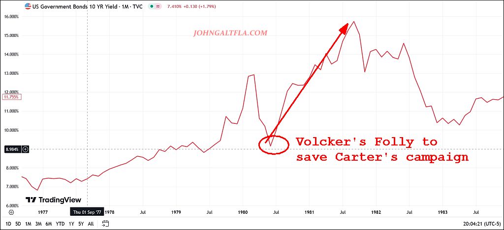 There are many central bank historians and celebrity economists who view Fed Chair Paul Volcker as some sort of hero for his stringent actions against inflation in 1981. What most historians and market economists fail to do is remind people of his folly to allegedly help President Jimmy Carter’s administration win re-election in 1980.