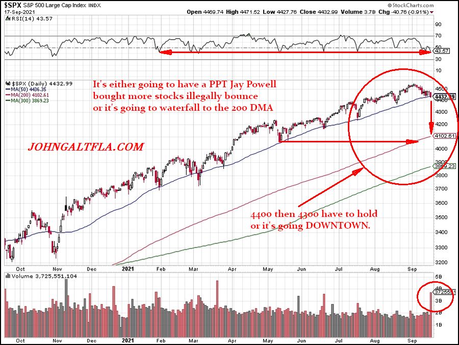 Market Alert: Waterfalls Ahead? John Galt 4 years ago Keep your head on a swivel ladies…. This chart speaks for itself: Chart courtesy of stockcharts.com If 4400 doesn’t hold early next week, BOHICA. Article Sharing: