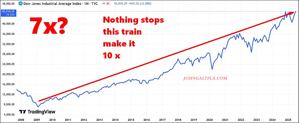 Hell, it’s up seven fold since the 2009 bottom and we can’t have petty little things like higher tariffs and trade wars derail the Bernanke-Yellen great MMT pump while destroying the American middle and lower classes now can we?