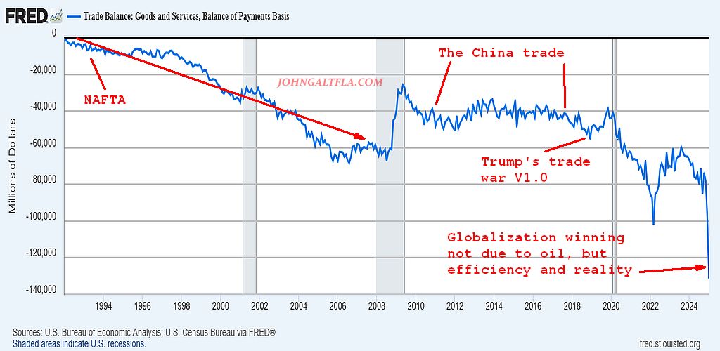 Think about the trade war that has accelerated tonight with the automobile tariffs and the supply chain implications of the so-called “Liberation Day” on April 2nd.