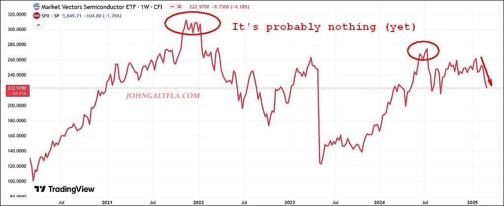 However, the failure to break above the 2022 highs and 2024 attempted retest of those highs is probably one of the most foreboding technical signals for the NASDAQ and rest of the market as it indicates an underlying rot in the once go-go portion of the market.
