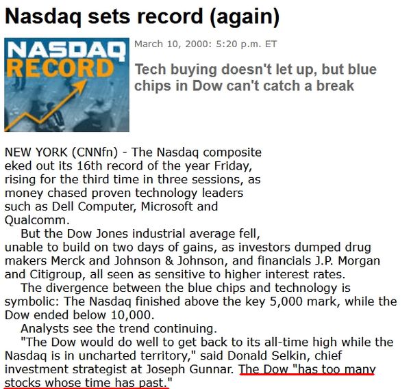 For example on March 10, 2000 from CNN Money this screenshot of the linked story says it all: