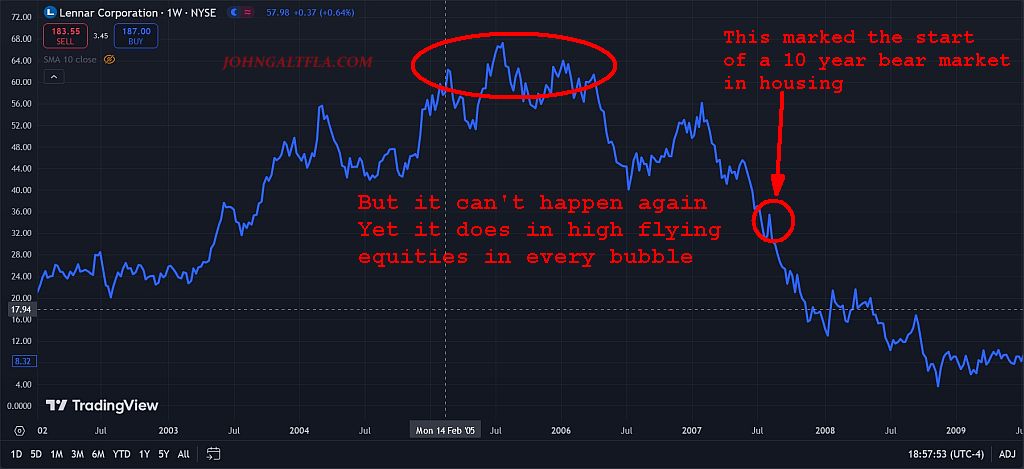 Of course it’s not just high tech where this happens. How could anyone forget the housing market sparked by Greenspan’s desire to create a bubble to offset the slow economy after the 2001 recession? Lennar($LEN) comes to mind: