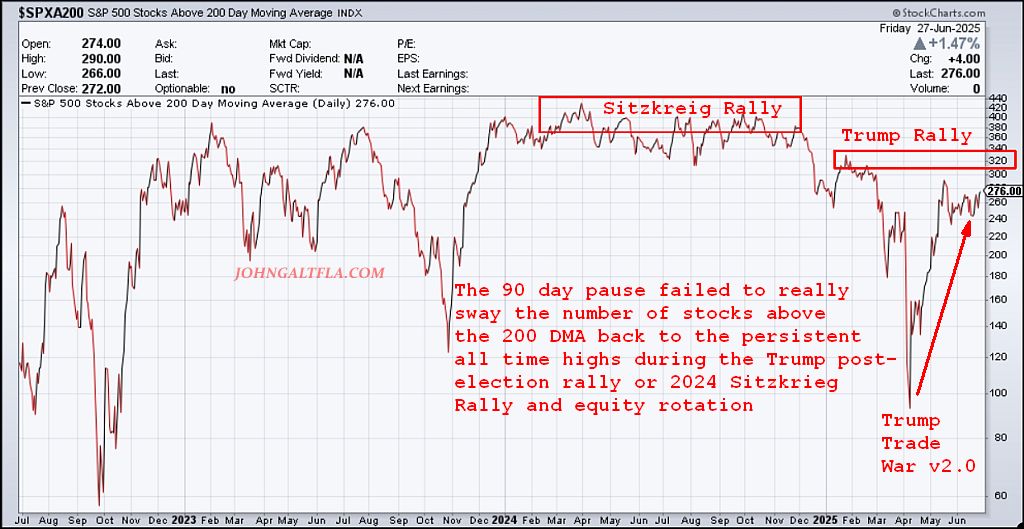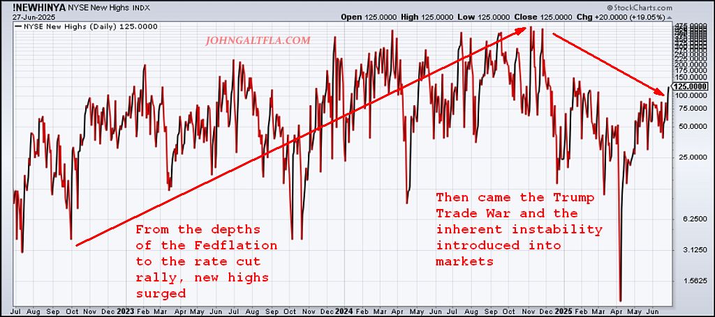 Meanwhile, as the markets surged to all time highs in the NASDAQ 100 and S&P 500, it worthy to look at the breadth of this recent hopium trade rally. The NYSE finally broke the 2025 downtrend on Friday but is still well below the surge felt after the Federal Reserve began cutting rates in 2022.