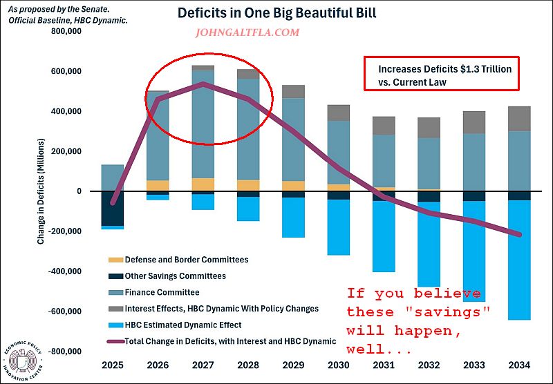 What is yours truly referring to? Check out this chart from EPIC (Economic Policy Innovation Center) that Congressman Chip Roy (who voted for the BBB) is posting on X today to show what a joke this is: