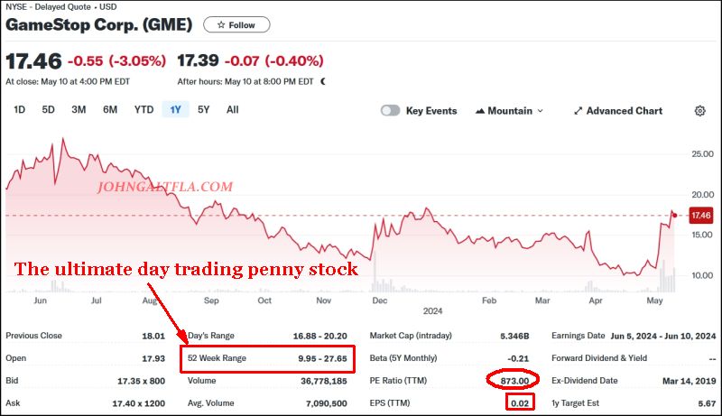 Thankfully day trading is alive and well. Until it isn’t. A P/E of 873 for a retailer who’s initial design concept was a pathetic knock off of Blockbuster. But by golly let’s pump more money into a dying retail industry which depends on young wealthy males having the ability to play video games as a profession.