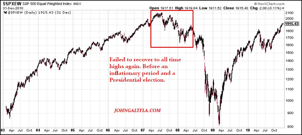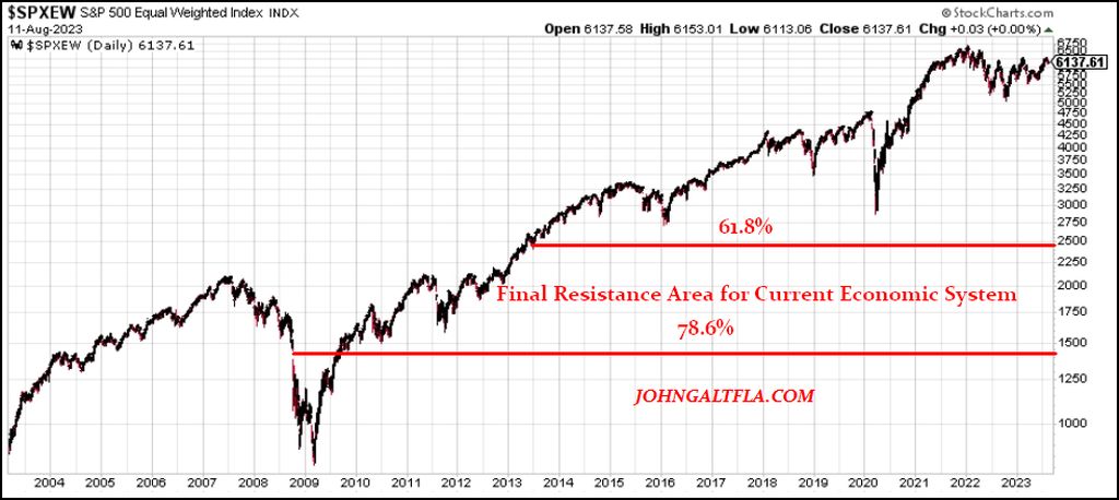 For those who have not noticed, I have evolved over the past year and learned to start using the S&P 500 Equal Weighted index to give a more realistic approach to prices and pattern recognition. Today I decided to open this up to the long long term view and guess what?