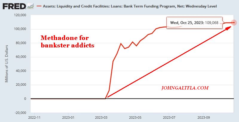 Fast forward to this current situation. The banks began to collapse in February and March of this year and the Federal Reserve started a backstop program to inject liquidity which of course has become the methadone treatment for our regional banking system.