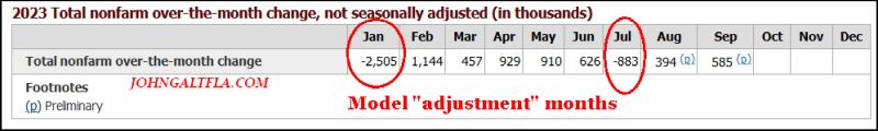 A primary example, and constant complaint of this author, is the idiotic birth/death modeling designed to estimate a perceived number of new jobs created which is basically created by throwing darts at a dartboard. The BLS defines it as follows: