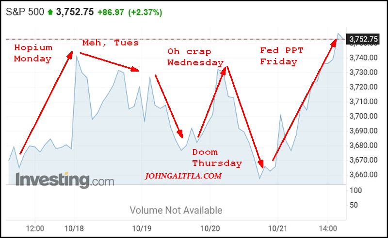 Nicky T at the Wall Street Journal gets the pump and dump central bank rumor of the week and the bear market rally was off and running during options expiration, although with somewhat anemic volume. The permabulls all perked up and said this was the start of a new bull market. The used car salesman passing as “business journalist” on the bubblevisions preached that you had to buy all the steaming piles of crap because Jay Powell was going to turn them into gold again.