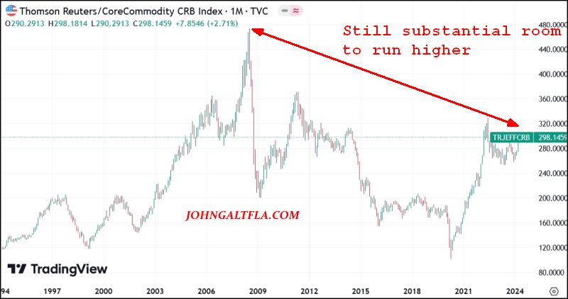 The reality though can be told through one chart which indicates why the inflation situation is only going to get worse, the ever reliable Thompson/Reuters CRB Index: