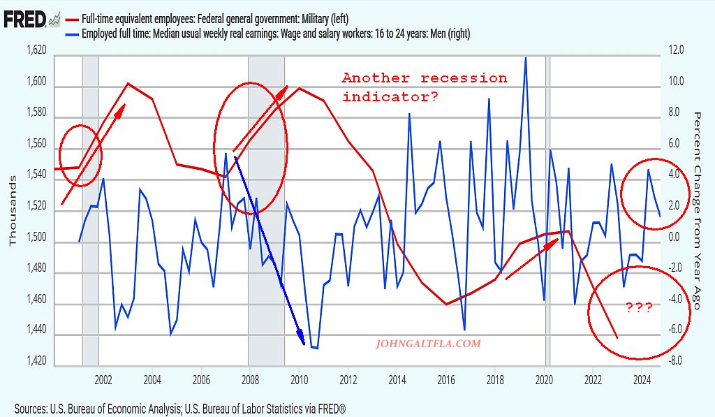 Let’s use our friends at FRED from the St. Louis Federal Reserve to perhaps provide the perspective that is needed, in this case just for men ages 16 to 24 years of age, the prime candidates for service in the US military services: