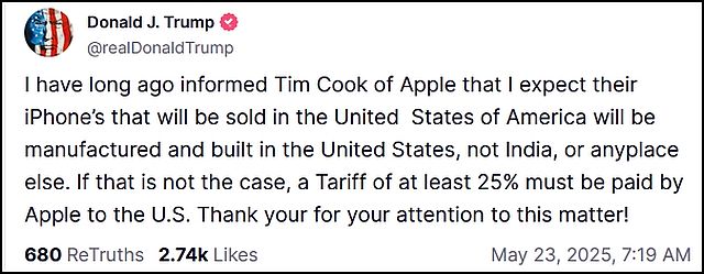 The fact that Trump still has his own social media website means he can make policy proclamations, whether he follows through on them or not, which move markets like this morning. For example, here is his first “Truth” this morning in a direct attack against Tim Cook and Apple: