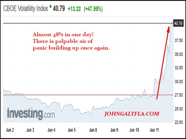 Lastly the biggest of moves was an almost 48% increase in the price on the VIX today. Just wow: