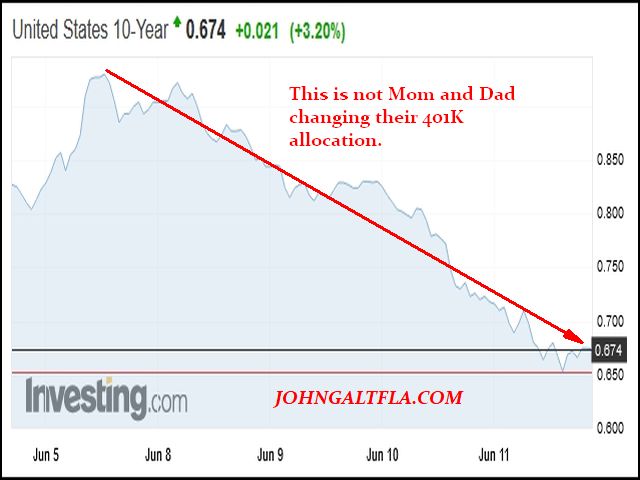 For example, the 10 year US Treasury does not make this dramatic of a move in under a week because your Uber Driver says it’s time to duck into safety: