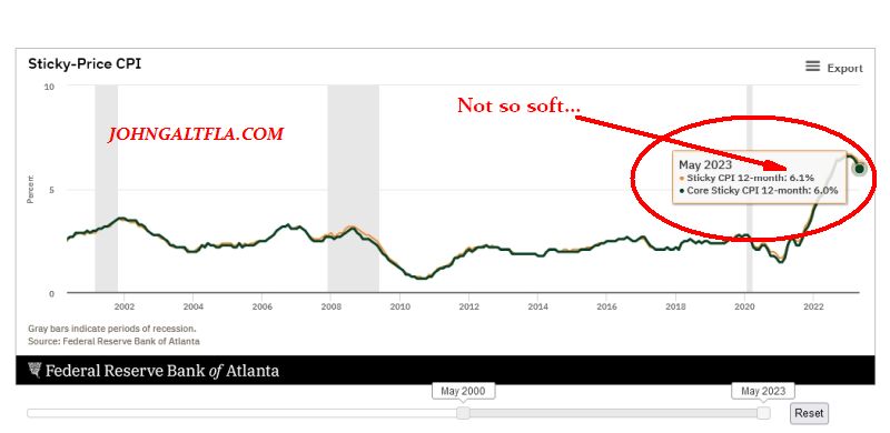 Inflation is not under control as the Federal Reserve Bank of Atlanta released their data also and the “Sticky CPI” is demonstrating that the Bubblevisions only mission is to pump equities, not report reality: