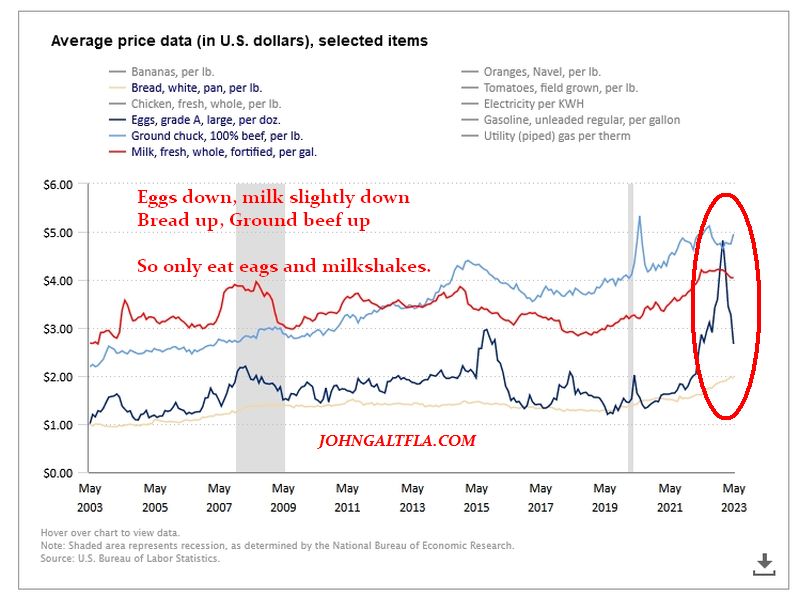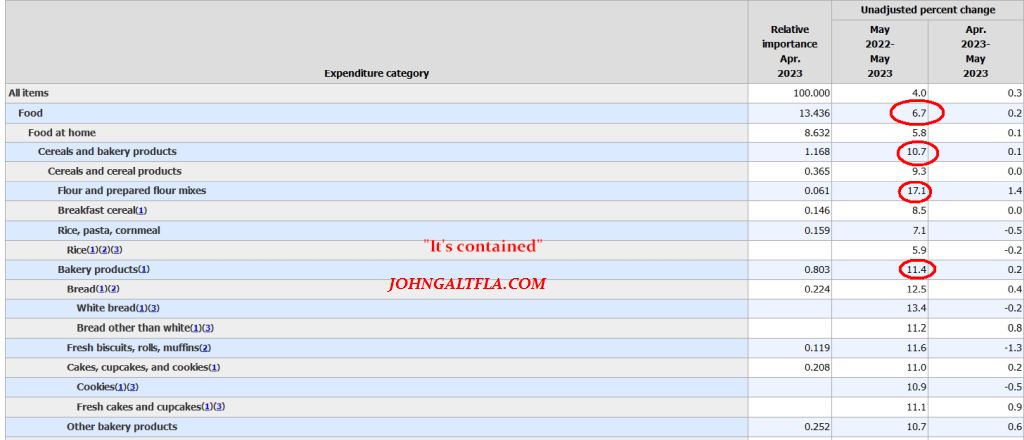 A slight roll over from last month to 6.1% is not that great. In fact, using the BLS data, one can see that some of the most common foodstuffs are still indicating persistent inflation embedded in the economy is a major issue.